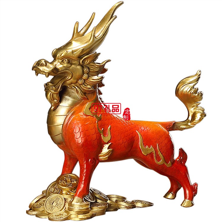 彩銅瑞獸麒麟純銅一對辦公室客廳擺件