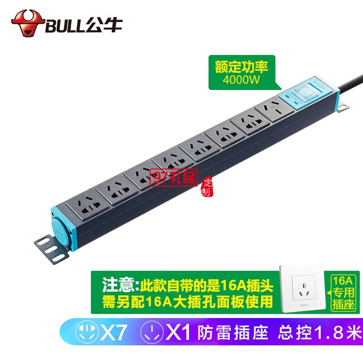 公牛機柜插座插線板排插接線板1.8米GNE-108DT定制公司廣告禮品
