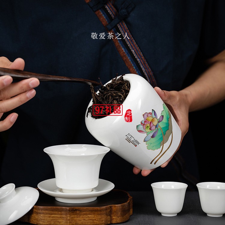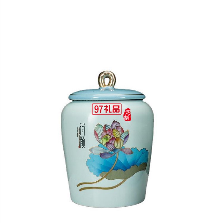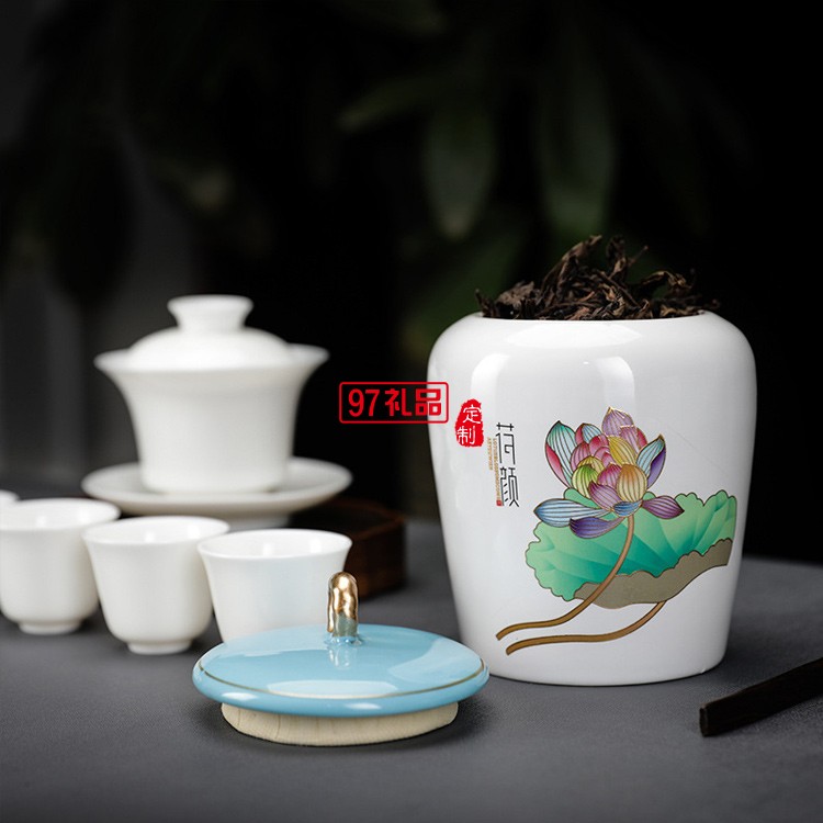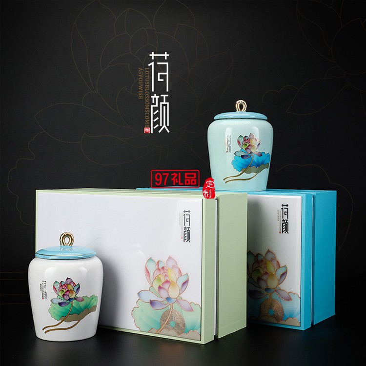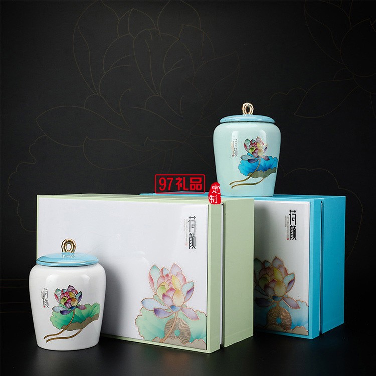 荷顏雙罐綠茶茶葉罐禮盒儲(chǔ)存茶缸茶罐陶瓷密封高檔商務(wù)禮品