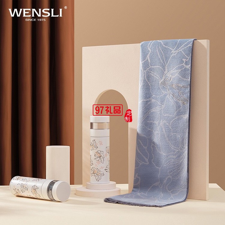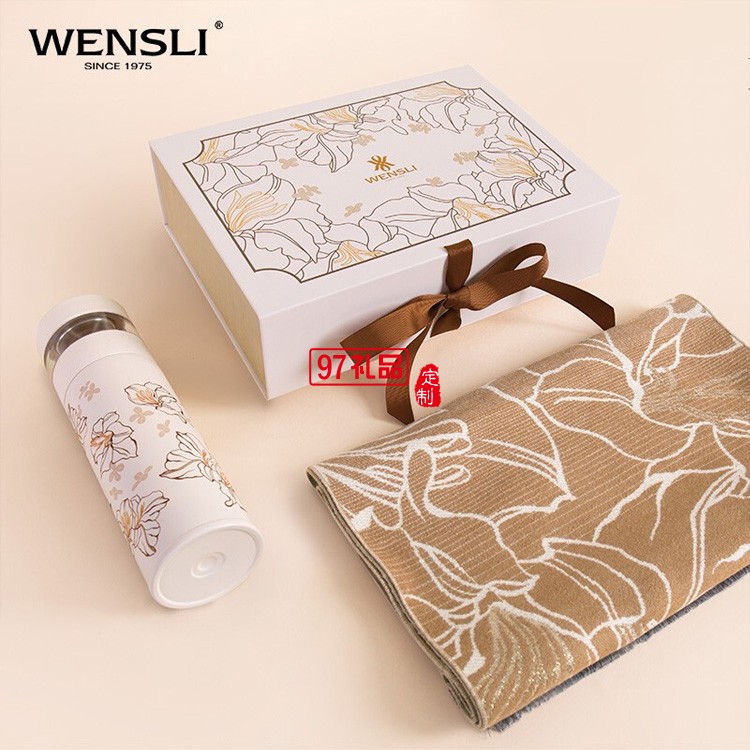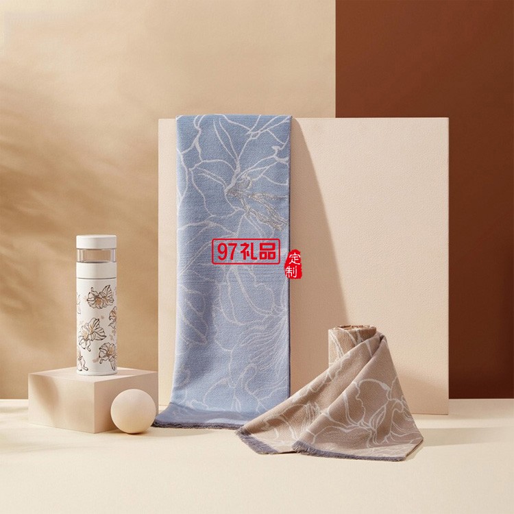 新品保暖漸變真絲絨圍巾花之秘境保溫杯禮盒套裝秋意濃 真絲絨圍巾-花之秘