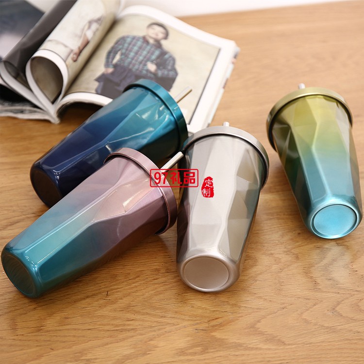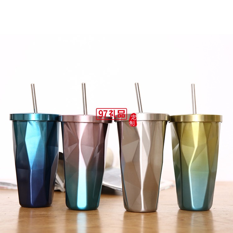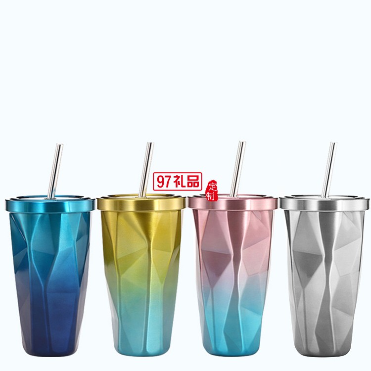 定制不規(guī)則雙層304不銹鋼吸管杯水杯子冰杯咖啡杯冰霸杯禮品