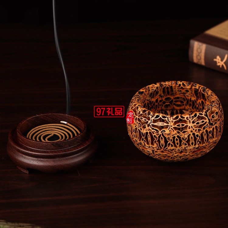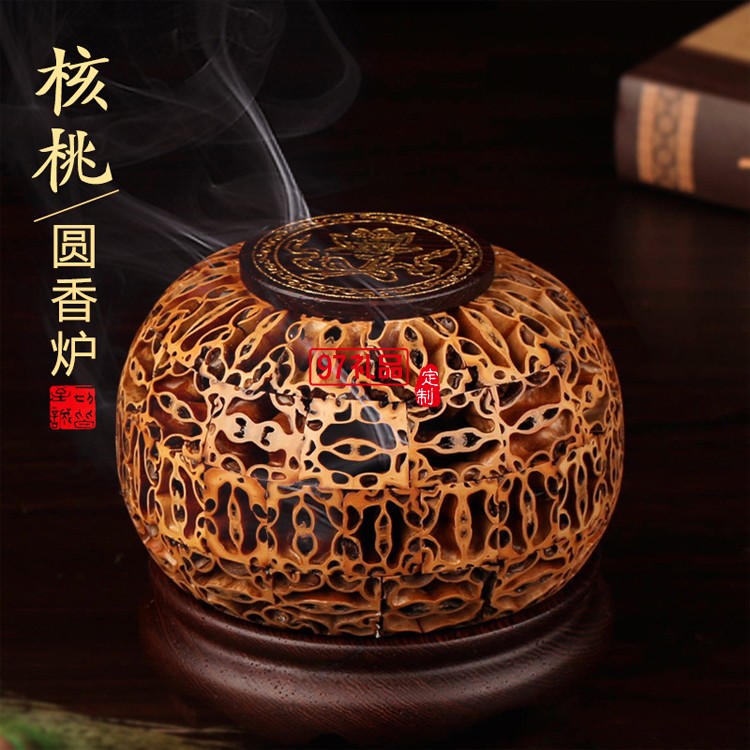 核桃盤(pán)香爐紅木創(chuàng)意禮品定制木質(zhì)工藝品