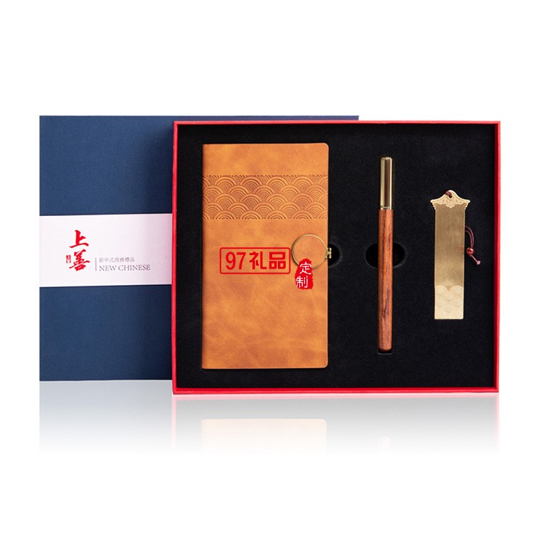 企業(yè)商務(wù)禮品黃銅書(shū)簽紅木筆記事本套裝