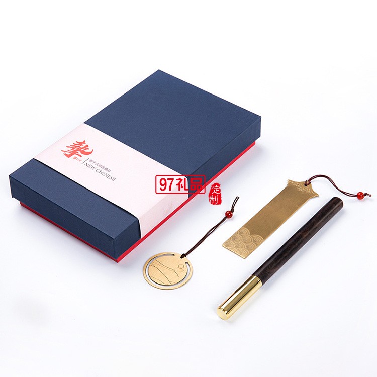 黃銅書簽書扣紅木筆商務(wù)文創(chuàng)禮品套裝