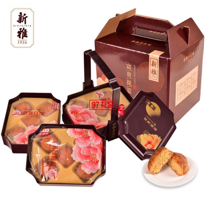花色富貴月餅提籃禮盒