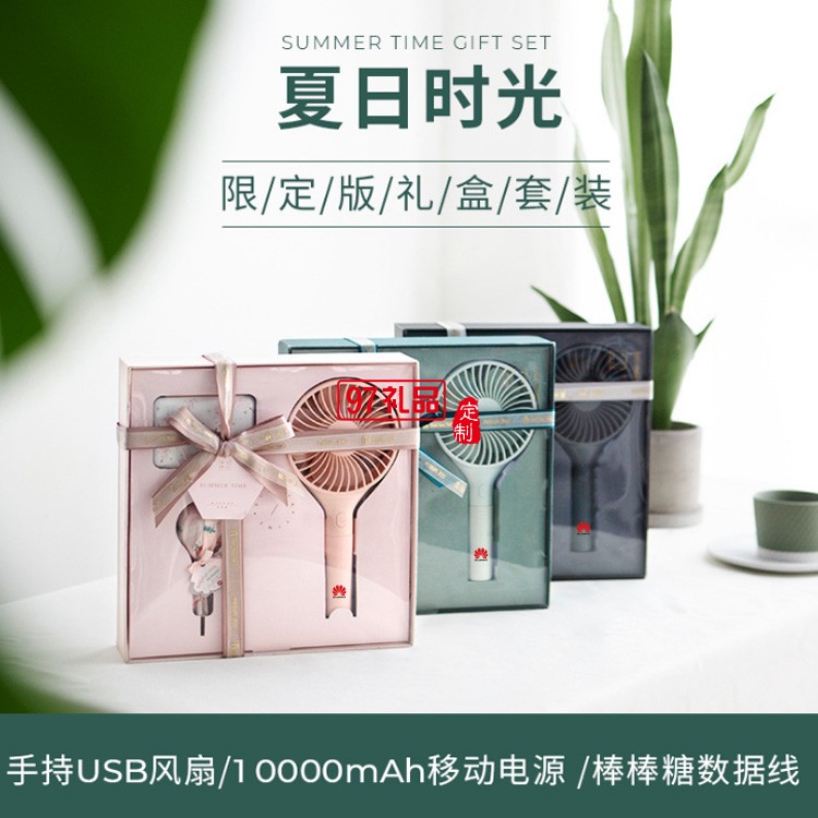 華為定制清涼夏季手持風(fēng)扇移動電源套裝送客戶禮品