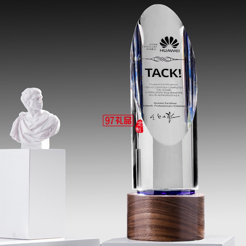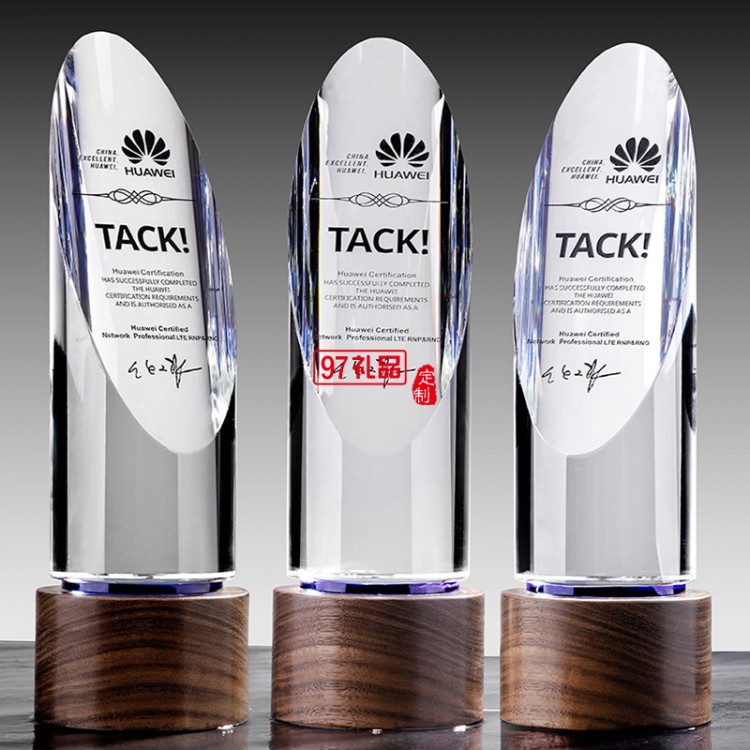 水晶圓柱斜面實(shí)木底座獎(jiǎng)杯獎(jiǎng)牌定制LOGO