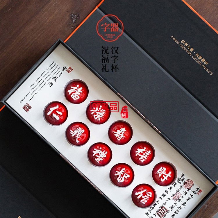 漢字杯十全十美陶瓷杯禮盒福祿壽禧財仁義禮智信帶字杯子
