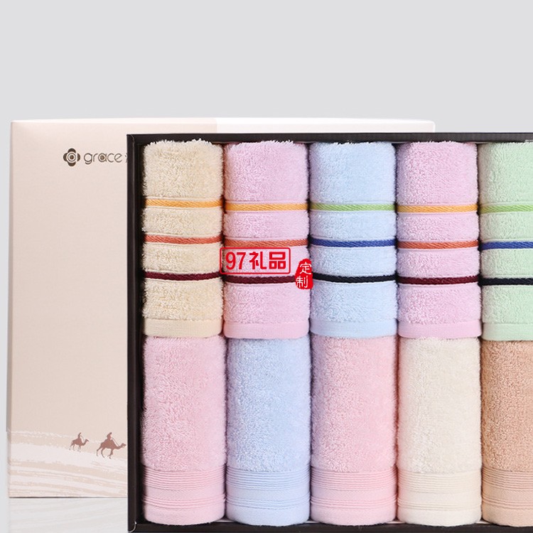 潔麗雅 毛巾禮盒套裝 10條商務(wù)婚慶回禮品家用純棉大毛巾