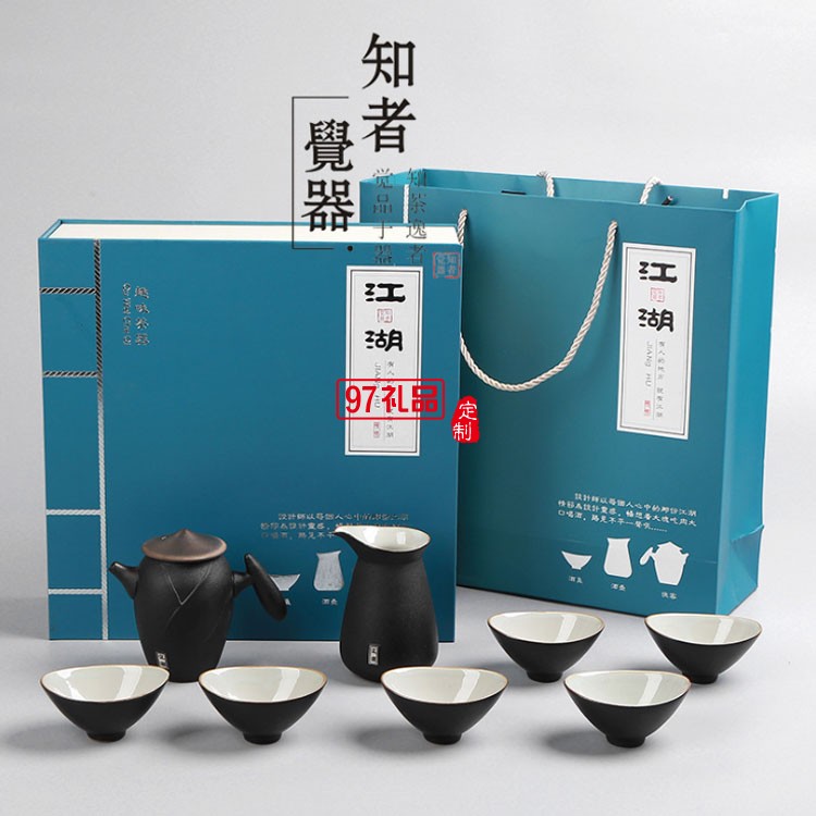 江湖黑陶瓷功夫茶具高檔商務(wù)送禮可定制LOGO