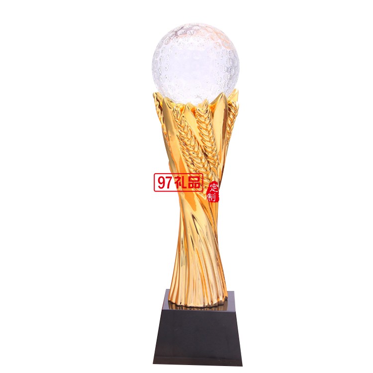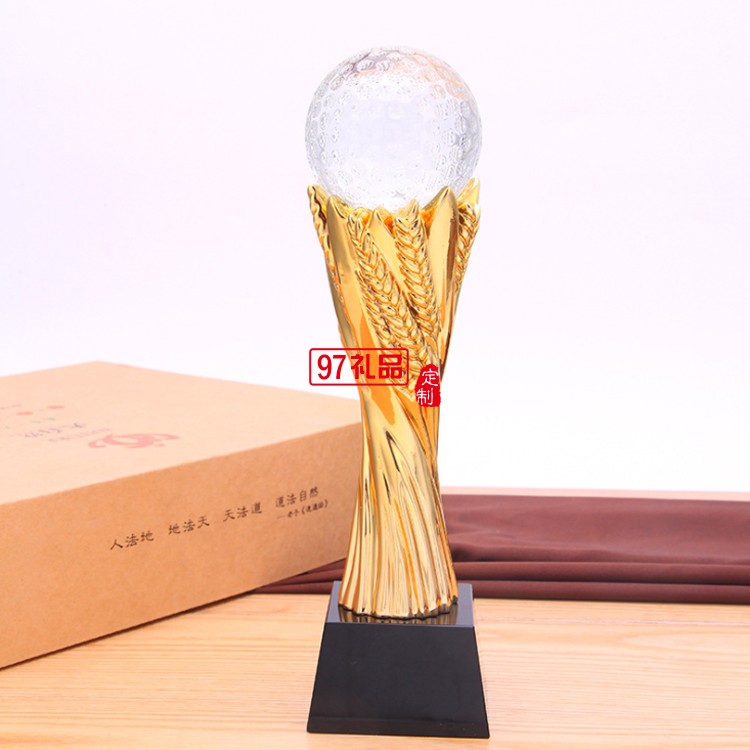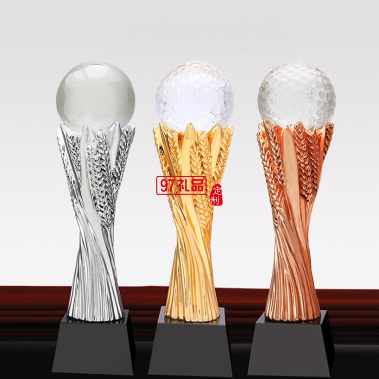 金色麥穗樹脂獎杯 水晶球獎杯定做刻字
