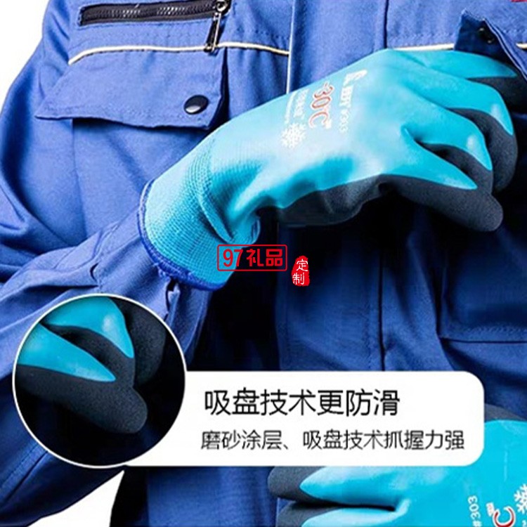 登升303冬季加絨加厚勞保手套 保暖防寒釣魚(yú)冰釣冷庫(kù)男浸膠手套