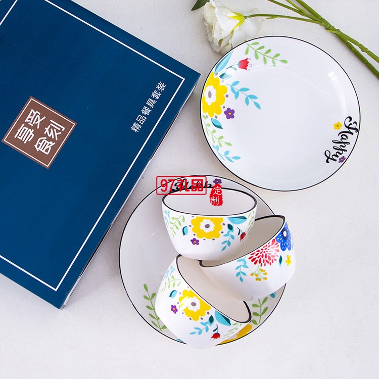 陶瓷餐具套裝小配頭禮盒裝 碗勺碗筷套裝禮品碗定制LOGO活動(dòng)小禮品
