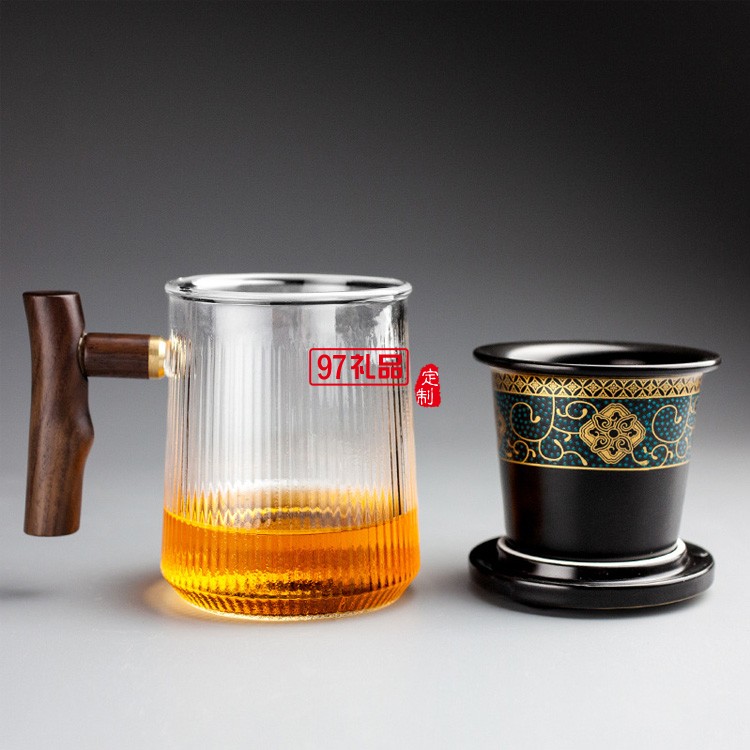 陶瓷恒溫保溫泡茶杯玻璃水杯辦公馬克杯商務(wù)茶水分離杯花茶杯
