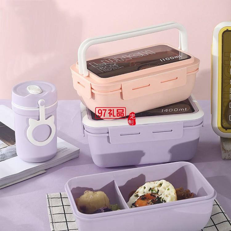 可微波爐塑料分格飯盒午餐盒密封防溢帶飯便當(dāng)盒湯罐早餐杯套裝