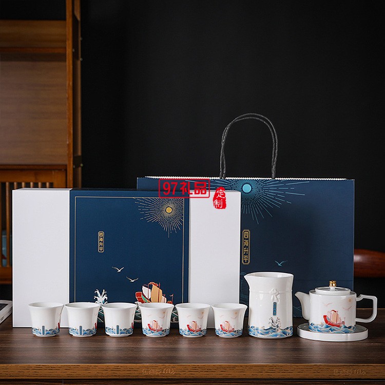 四海升平茶具套裝可印ogo商務(wù)禮盒開業(yè)伴手禮定制