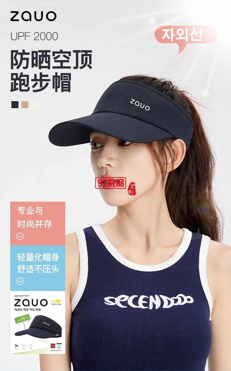 韓國(guó)zauo防曬空頂跑步帽女戶外運(yùn)動(dòng)防紫外線網(wǎng)球帽透氣春夏鴨舌帽