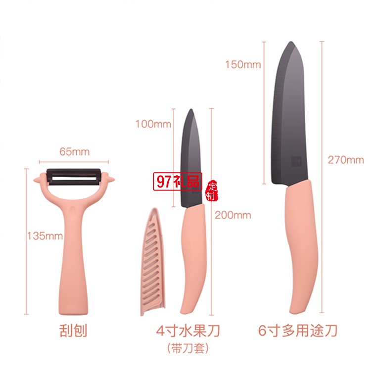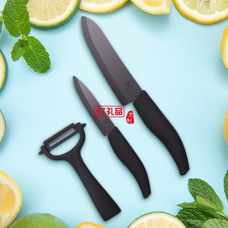 陶瓷刀水果刀套裝廚房刀具削皮切片刀刀瓜果菜刀三件套定制公司廣告禮品