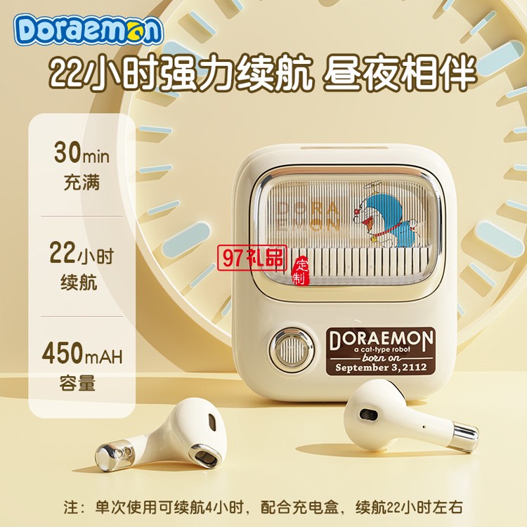 哆啦A夢 藍牙耳機入耳式無線雙耳立體聲運動 復古TWS藍牙耳機