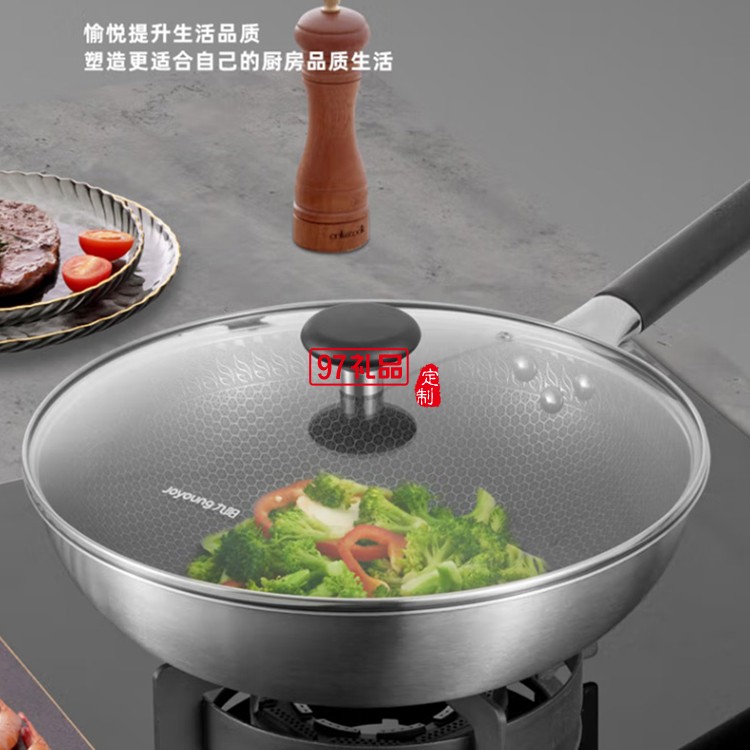 九陽304不銹鋼炒鍋 不粘炒菜鍋CJ929定制公司廣告禮品