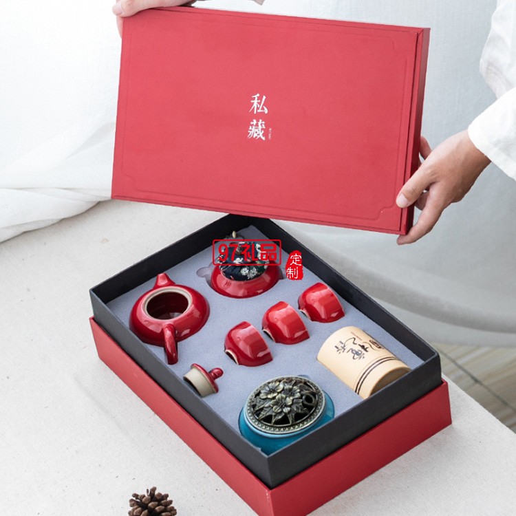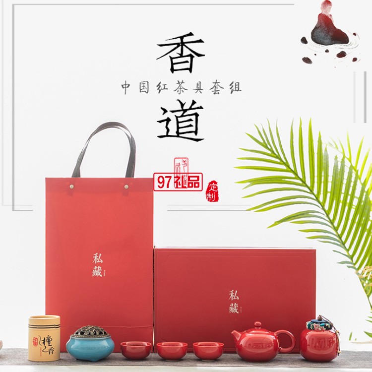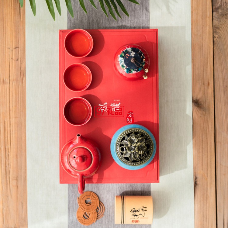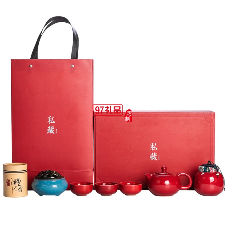 中國紅陶瓷功夫茶具地產送禮客戶送禮周年慶 可定制logo