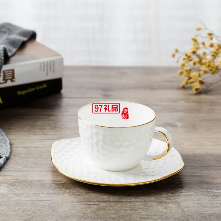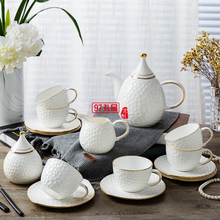 描金陶瓷咖啡具景德鎮(zhèn)西式高檔骨瓷杯碟15頭套裝禮品批發(fā)定制LOGO
