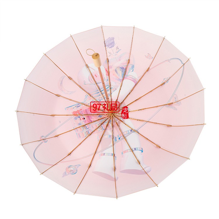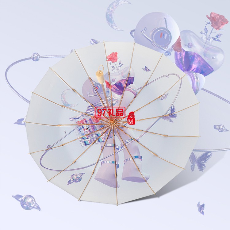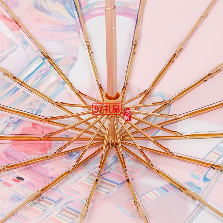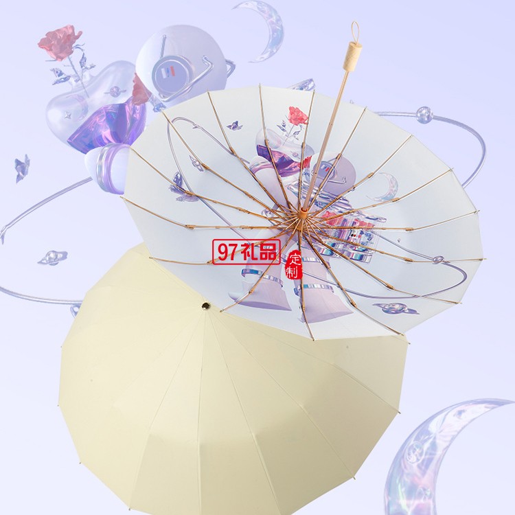 女神節(jié)三八送禮新款三折16骨手開彩膠晴雨傘實木手柄遮陽傘