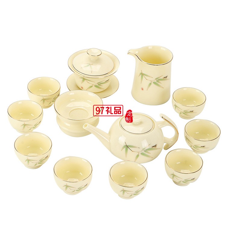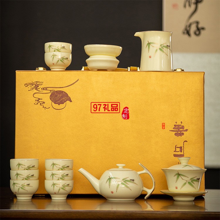 羊脂玉茶具套裝禮盒中式描金白瓷蓋碗泡茶壺茶碗客廳商用整套