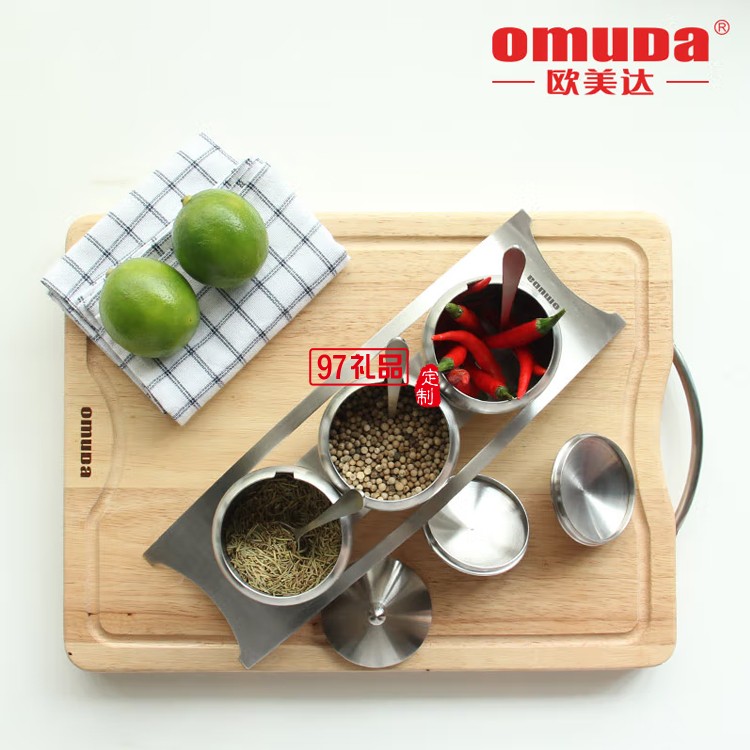 歐美達調(diào)味罐調(diào)料304不銹鋼廚房儲物瓶油鹽罐定制公司廣告禮品