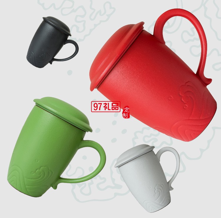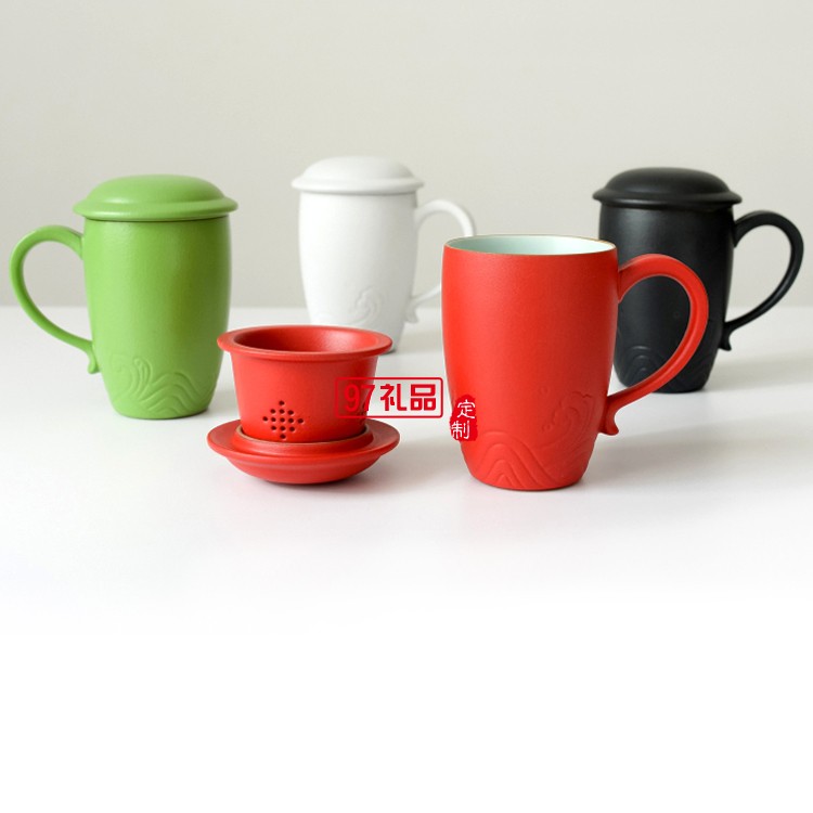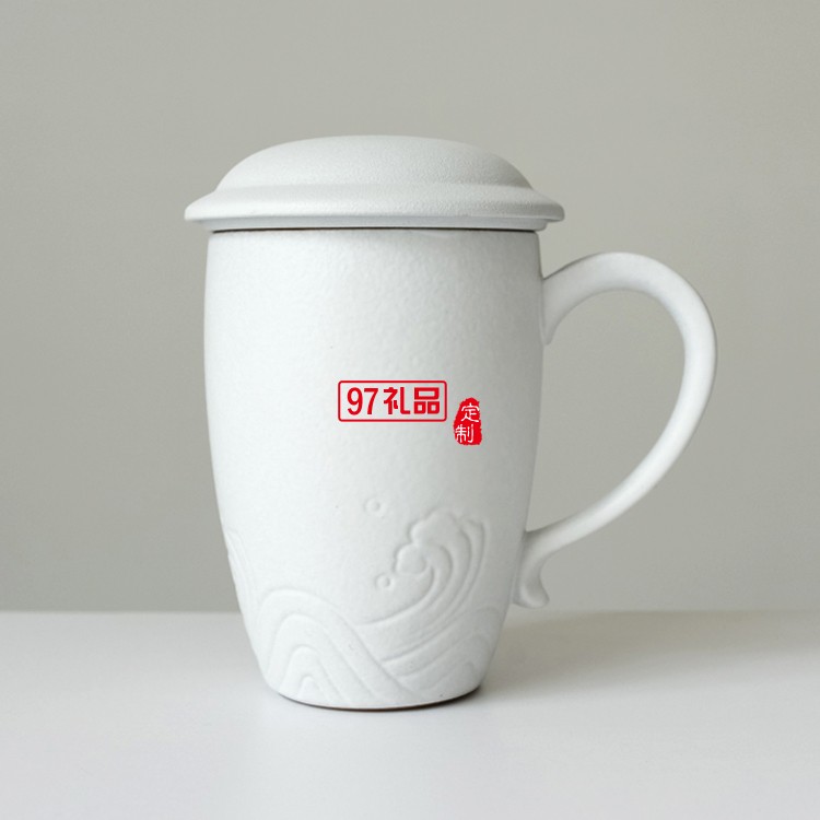 小皿馬克杯陶瓷帶蓋帶過濾網(wǎng)定制logo實(shí)用禮品禮品杯子定制