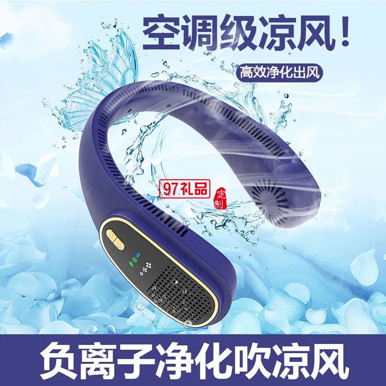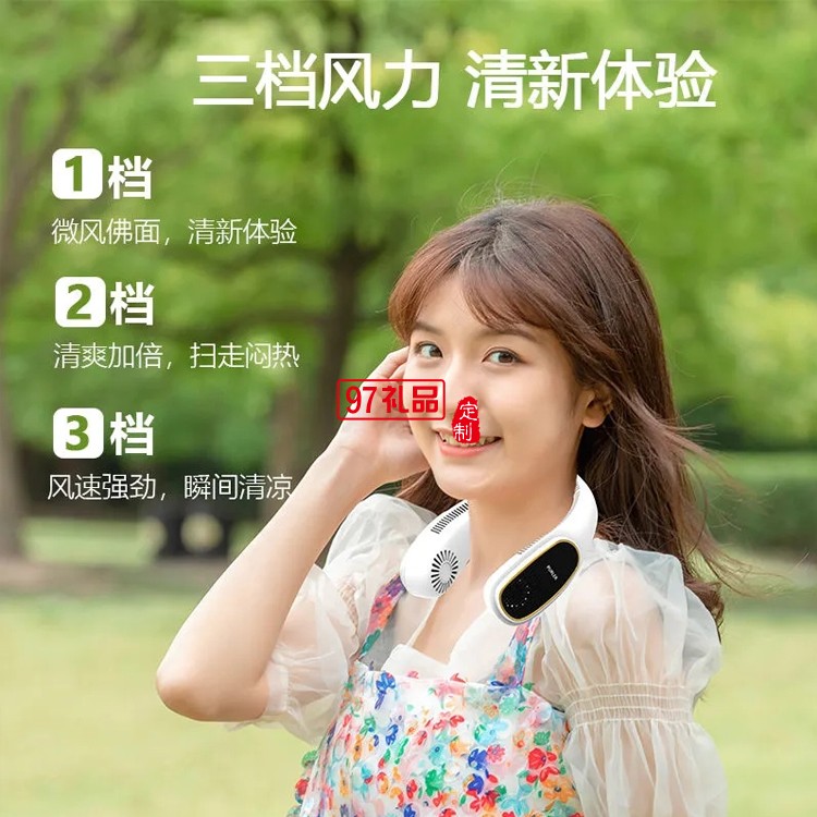 四核無(wú)葉風(fēng)扇強(qiáng)力渦輪降溫懶人便攜式頭戴小電扇定制公司廣告禮品