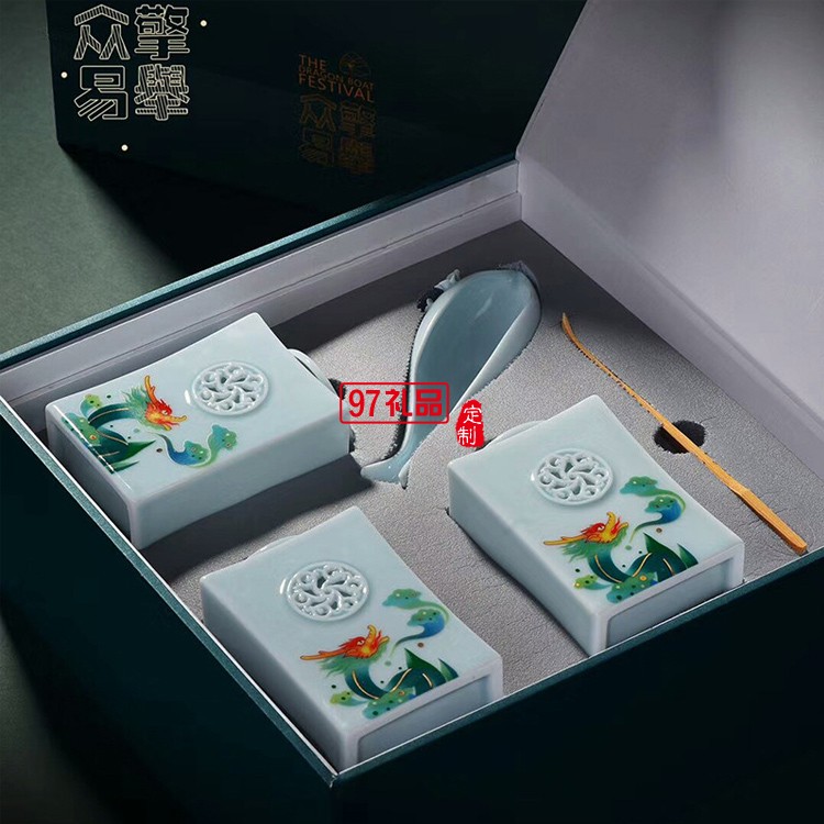 眾擎易舉茶禮青瓷茶葉罐蓋碗禮盒端午節(jié)定制