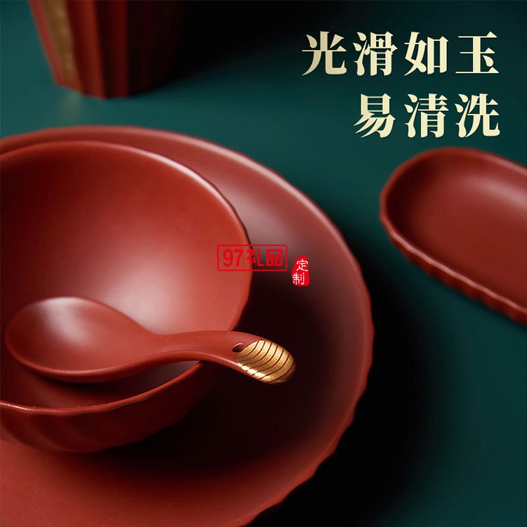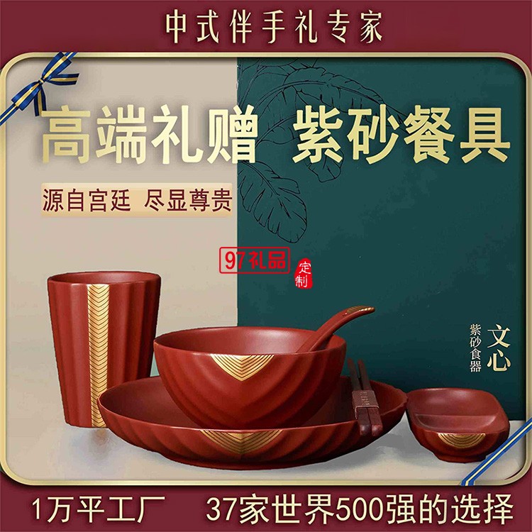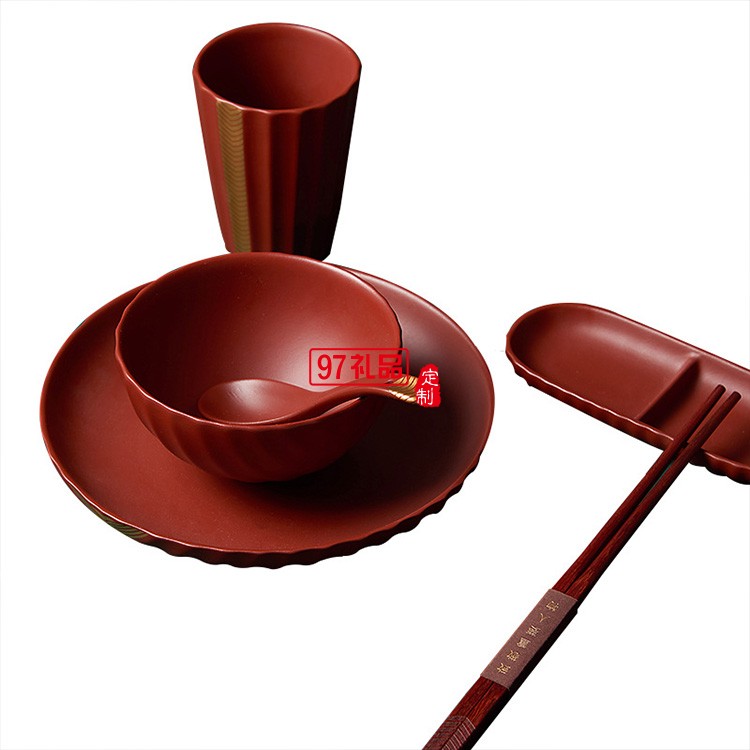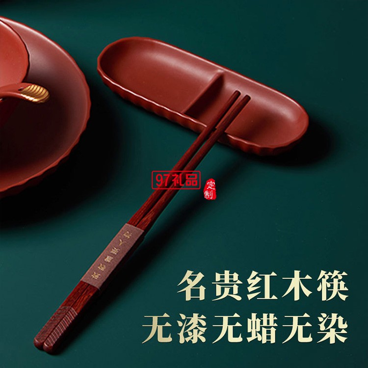 手工貼金原礦紫砂科檀紅木筷子餐具一人裝文創(chuàng)禮品套裝送會員貴賓