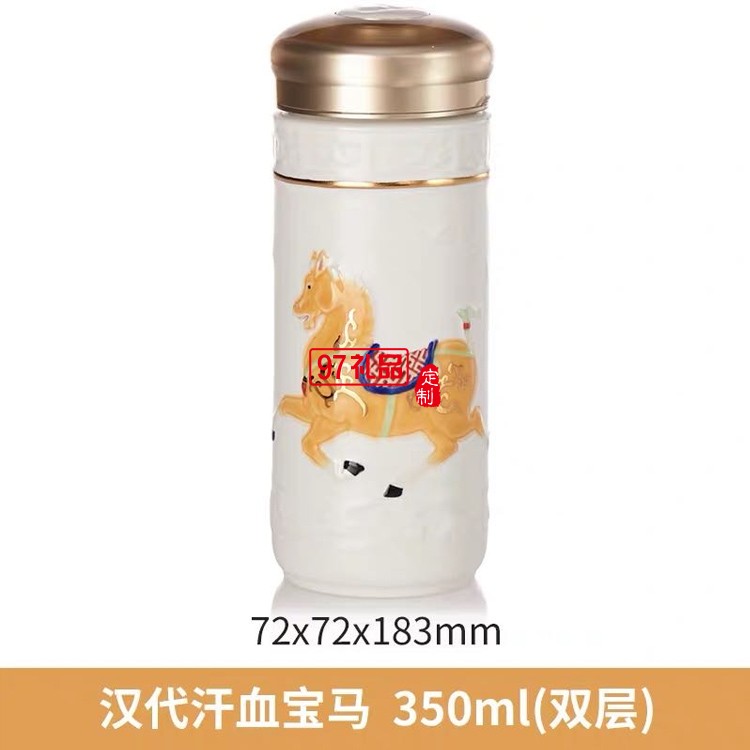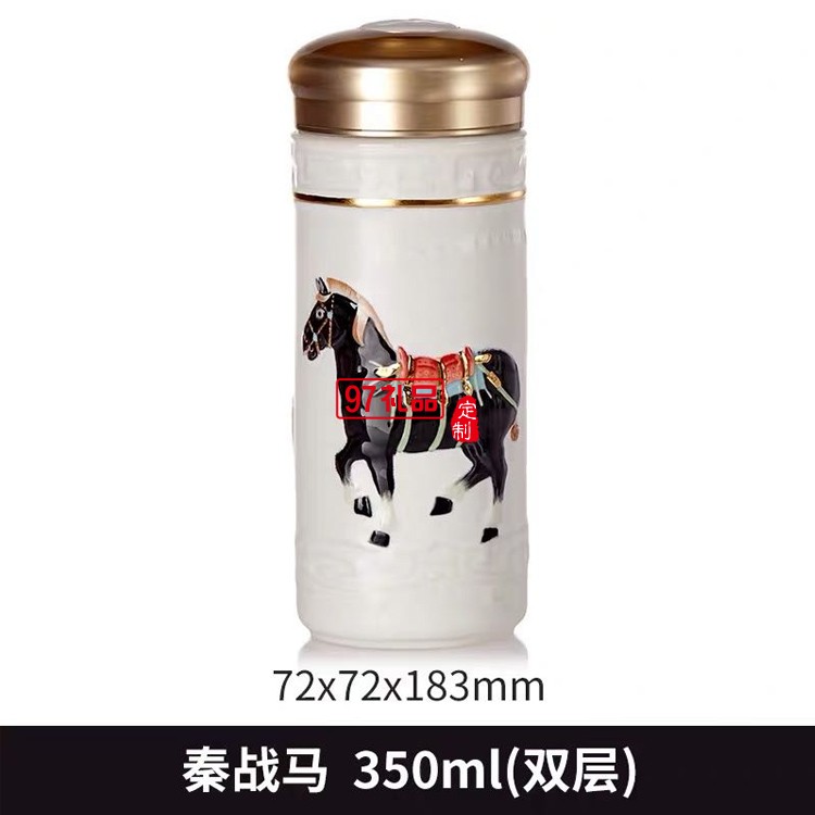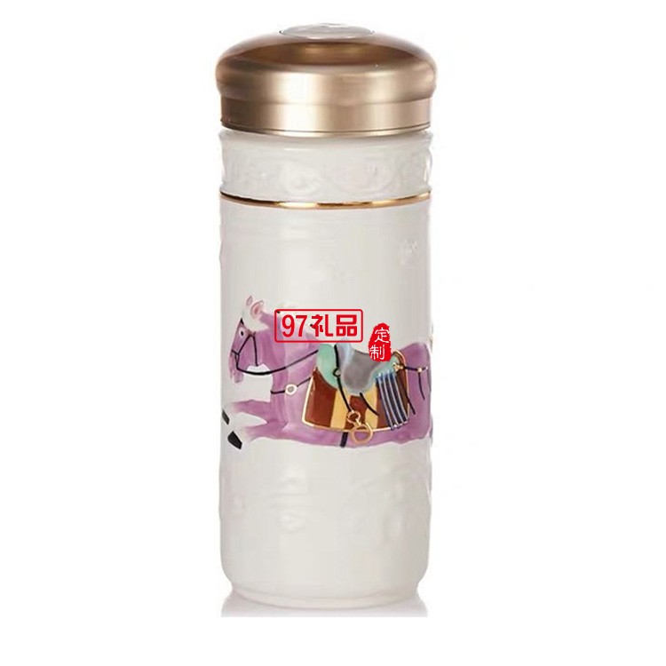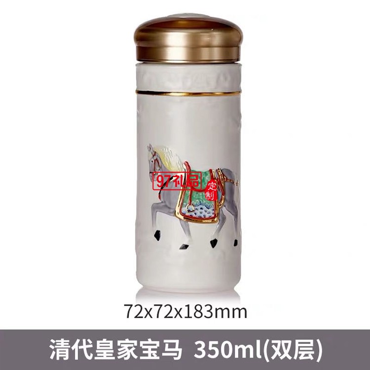 乾唐軒活瓷六朝代馬雙層350ml陶瓷杯水杯子復(fù)古鎏金彩繪隨手杯