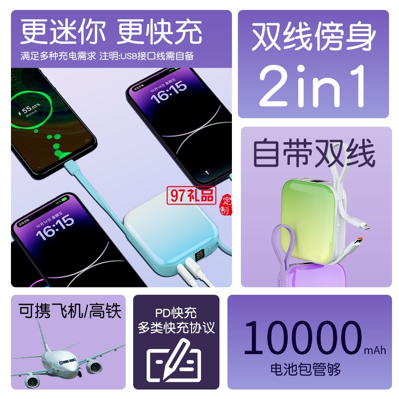 22.5w充電寶10000毫安20W快充PD大容量便攜迷你自帶線移動