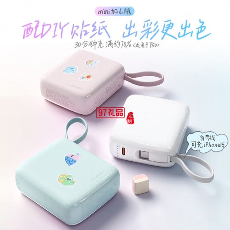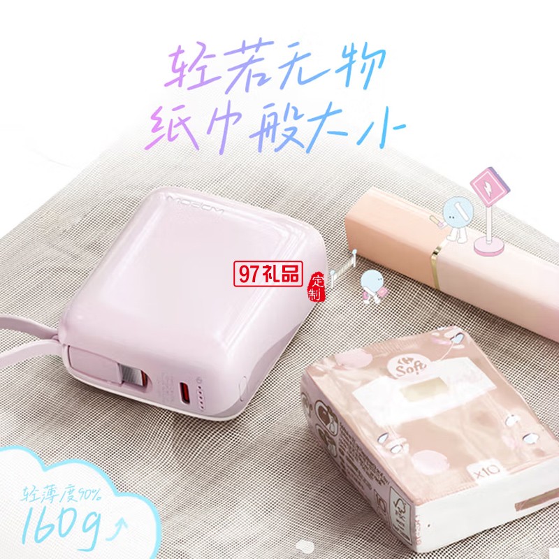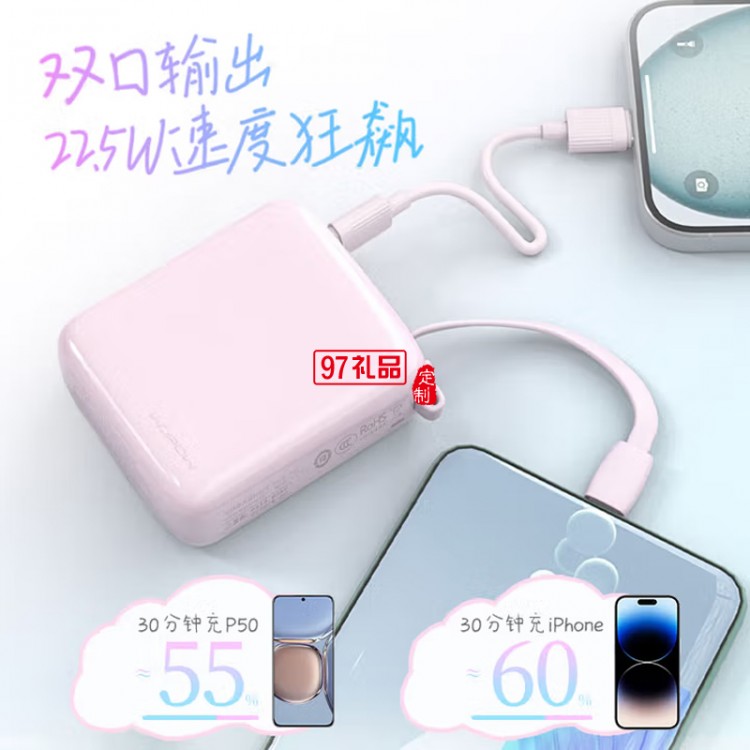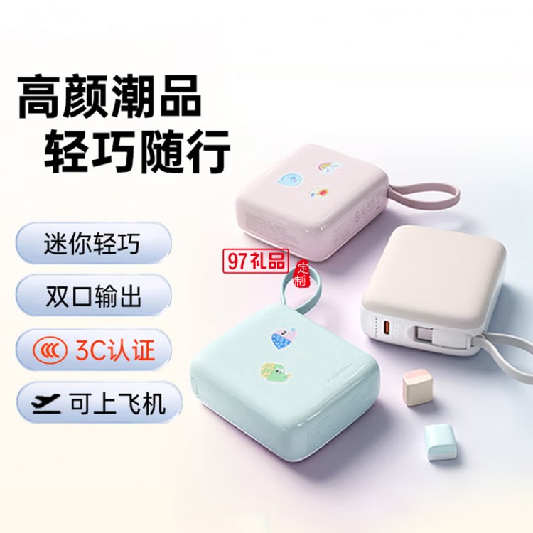 小方糖充電寶10000毫安 PD22.5W快充 便攜小巧自帶線移動電源