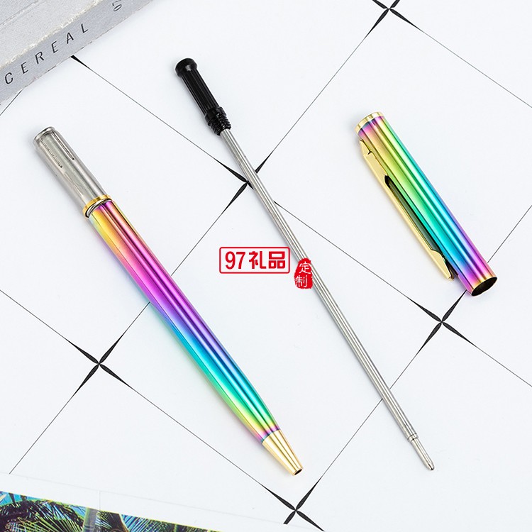 炫彩色潮流簽字筆 金屬材質(zhì)順滑圓珠筆 舒適手寫辦公文教簽字筆