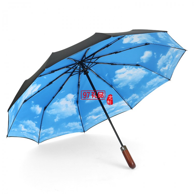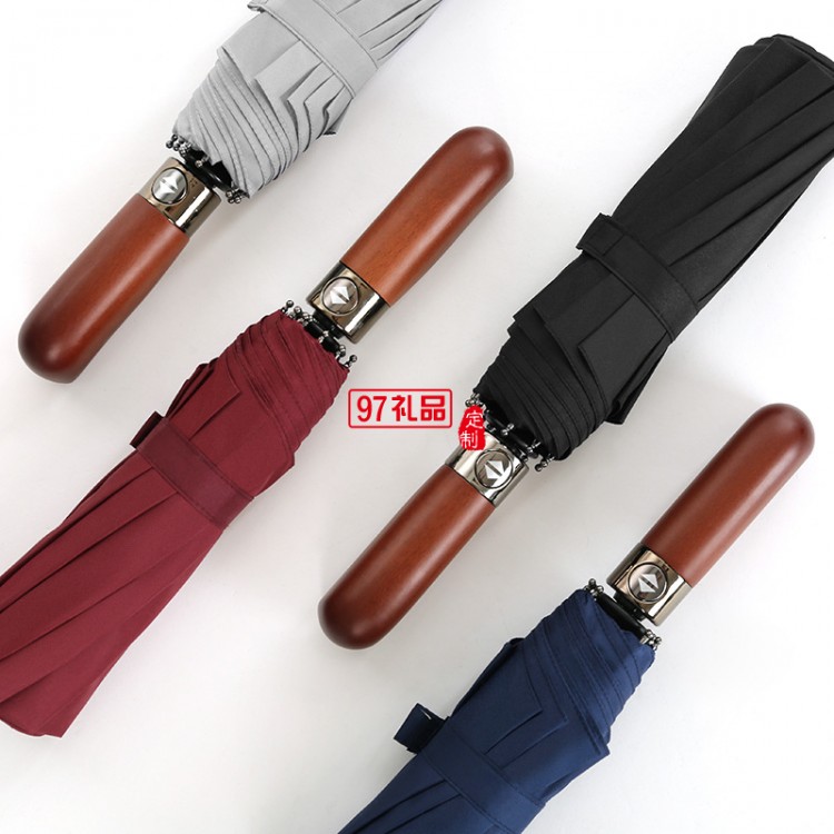 德國風(fēng)暴三折全自動雨傘折疊傘男商務(wù)實木復(fù)古紳士雨傘定制