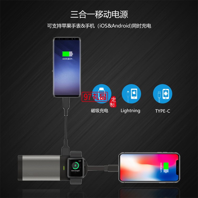 中國(guó)工商銀行定制 自帶線三合一無(wú)線充電寶 小巧便攜