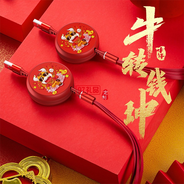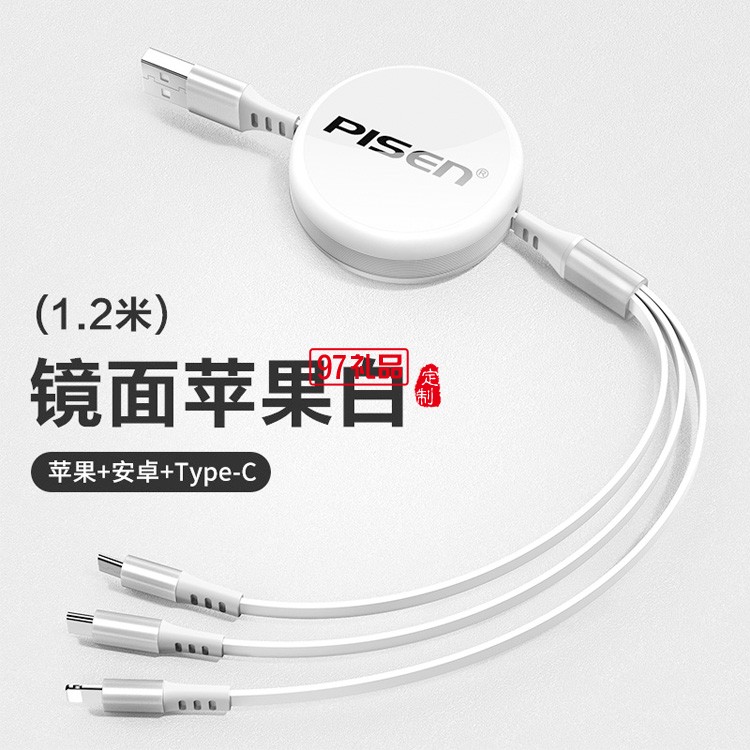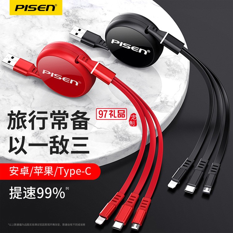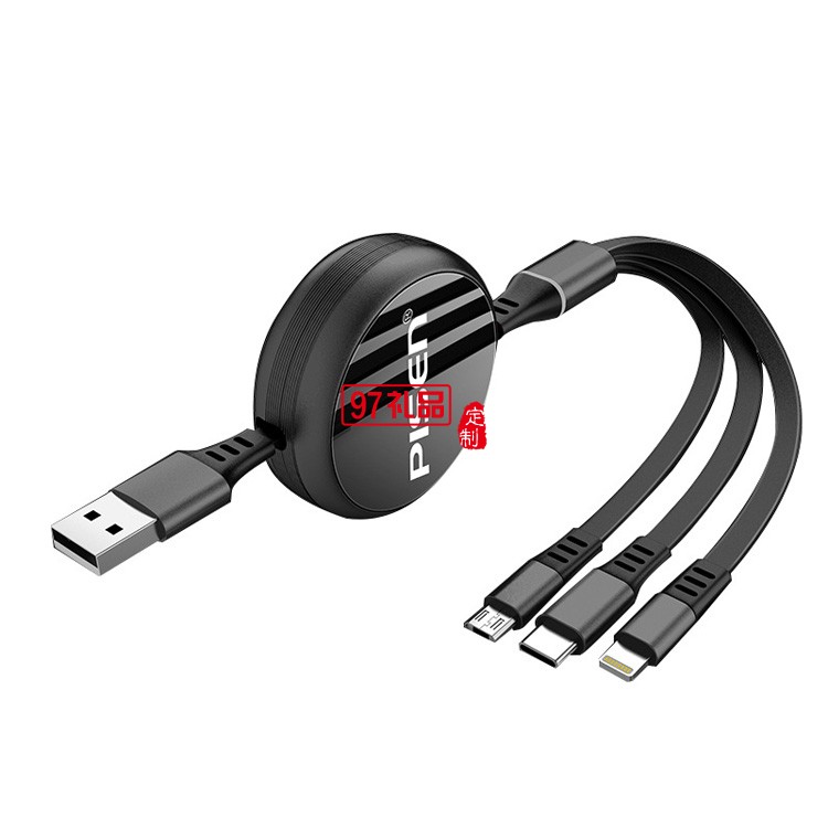 品勝一拖三數(shù)據(jù)線三合一3A快充線適用蘋(píng)果華為伸縮數(shù)據(jù)線禮品定制