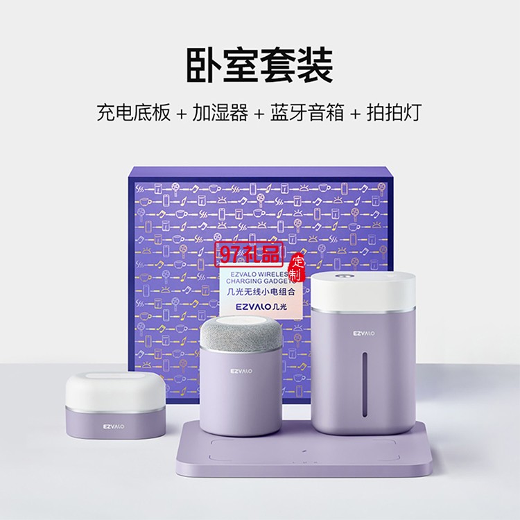 無(wú)線小電組合羅蘭紫4件套充電底板 加濕器 藍(lán)牙音響 拍拍燈定制公司廣告