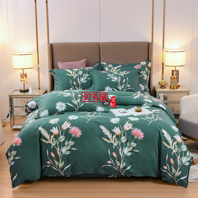 雅鹿 時(shí)尚全棉高密噴氣活性四件套床單被套枕套定制公司廣告禮品