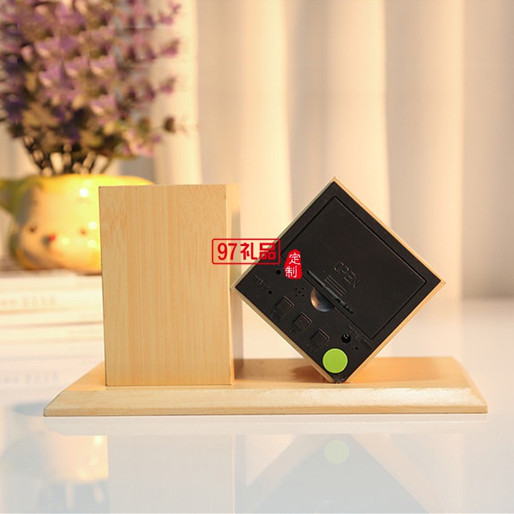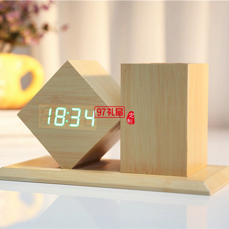 聲控鬧鐘LED木鐘創(chuàng)意筆筒時尚禮品中國銀行定制可定制logo