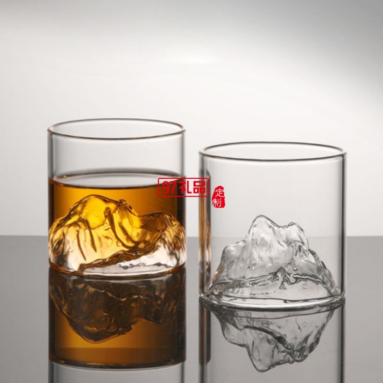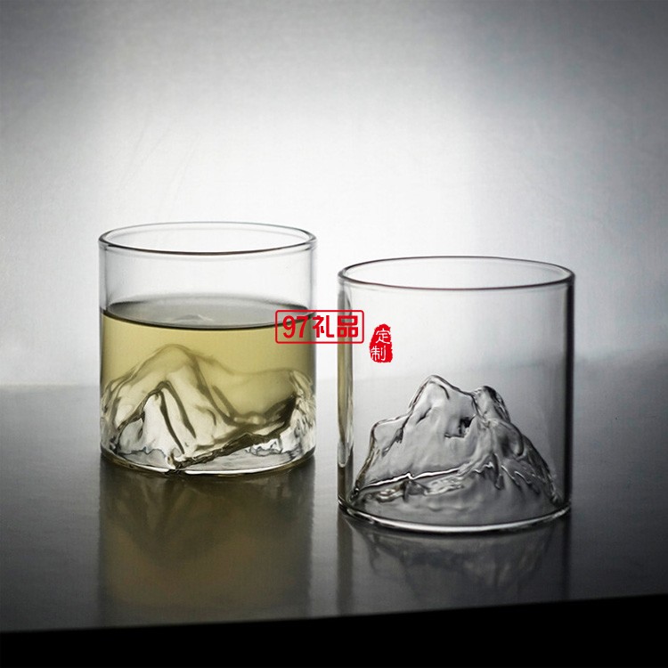 富士山玻璃茶杯復(fù)古觀山酒杯日式耐高溫水杯子玻璃