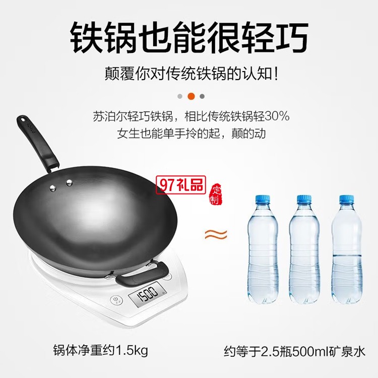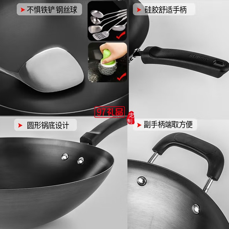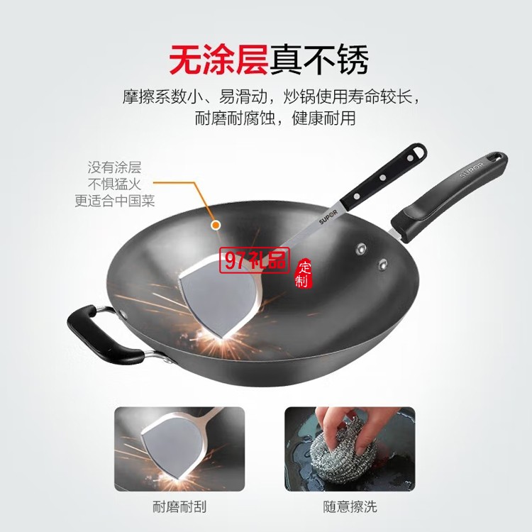 蘇泊爾鐵鍋 無涂層圓底炒鍋 炒菜鍋 FC34T24定制公司廣告禮品
