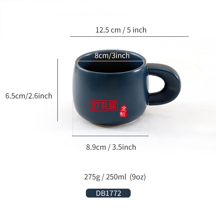 定制克萊因藍咖啡杯啞光馬克杯創(chuàng)意大肚陶瓷杯伴手禮活動小禮品