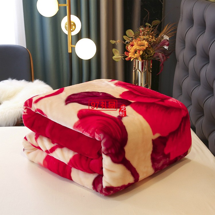 雙層加厚拉舍爾毛毯婚慶毯珊瑚絨毯四季通用午睡毯雙面絨毯禮品毯