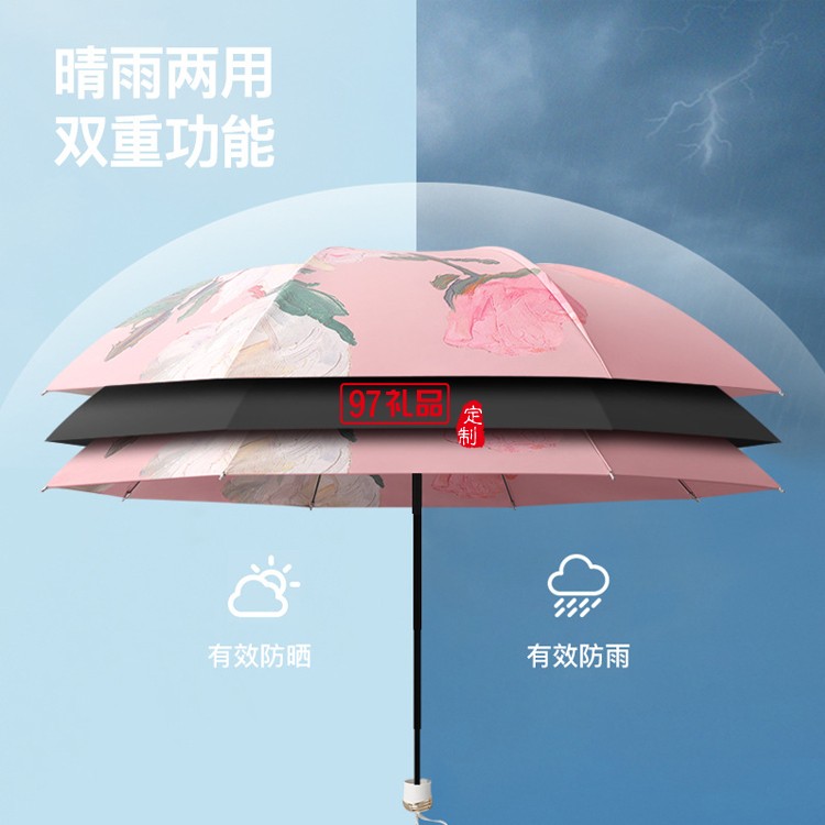 女神節(jié)專屬小紅書爆款8骨三折手開黑膠雙層傘遮陽傘手開晴雨傘