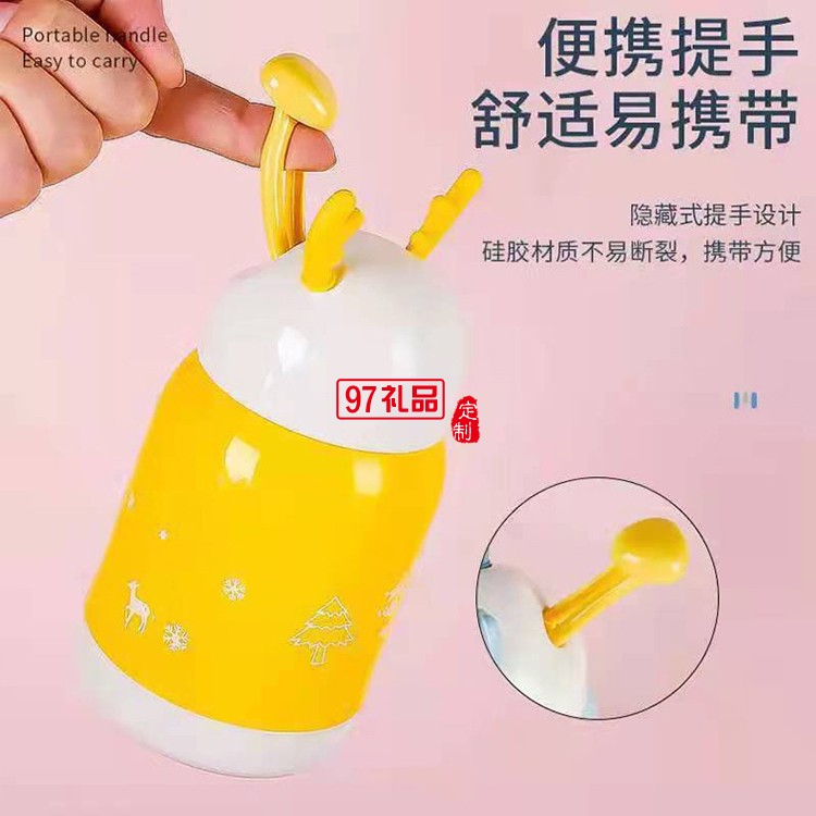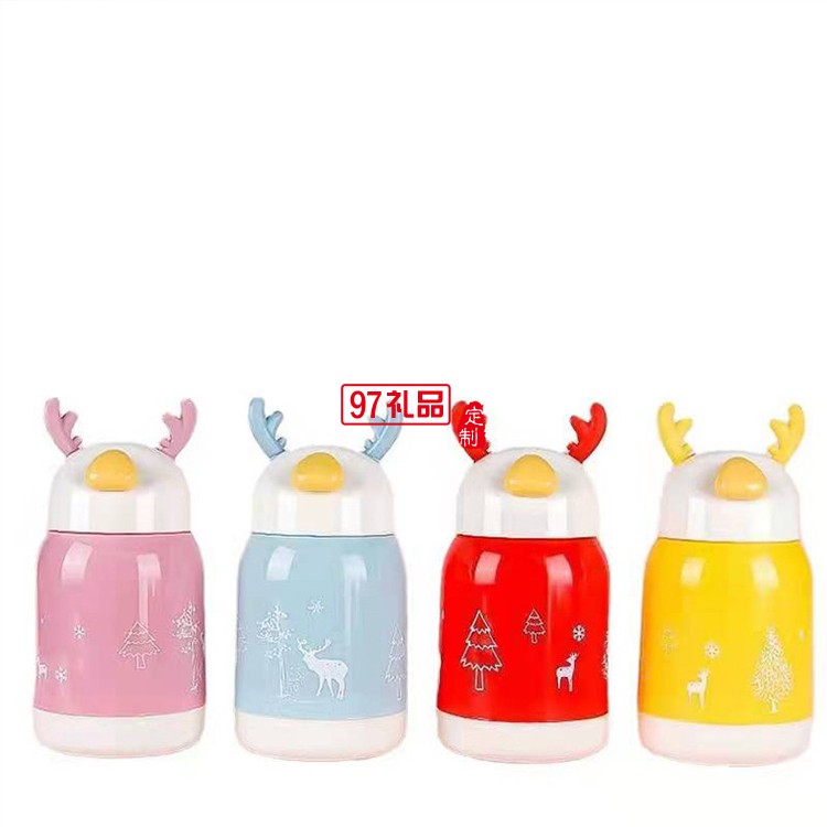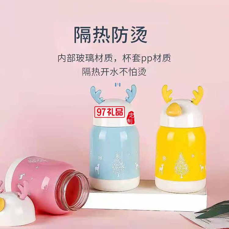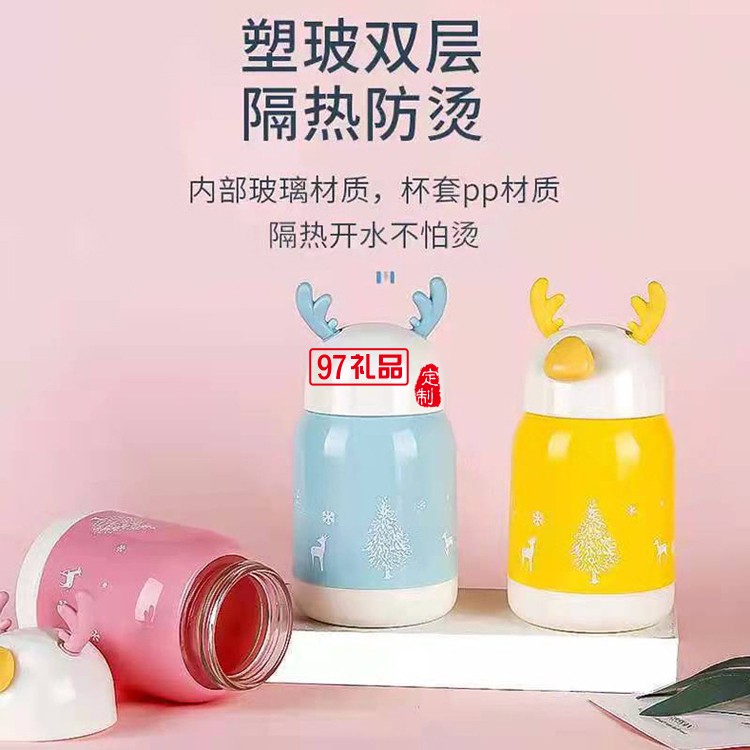 可愛卡通靈鹿杯玻璃學(xué)生杯子便攜式玻塑杯