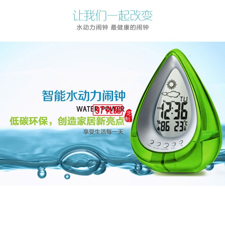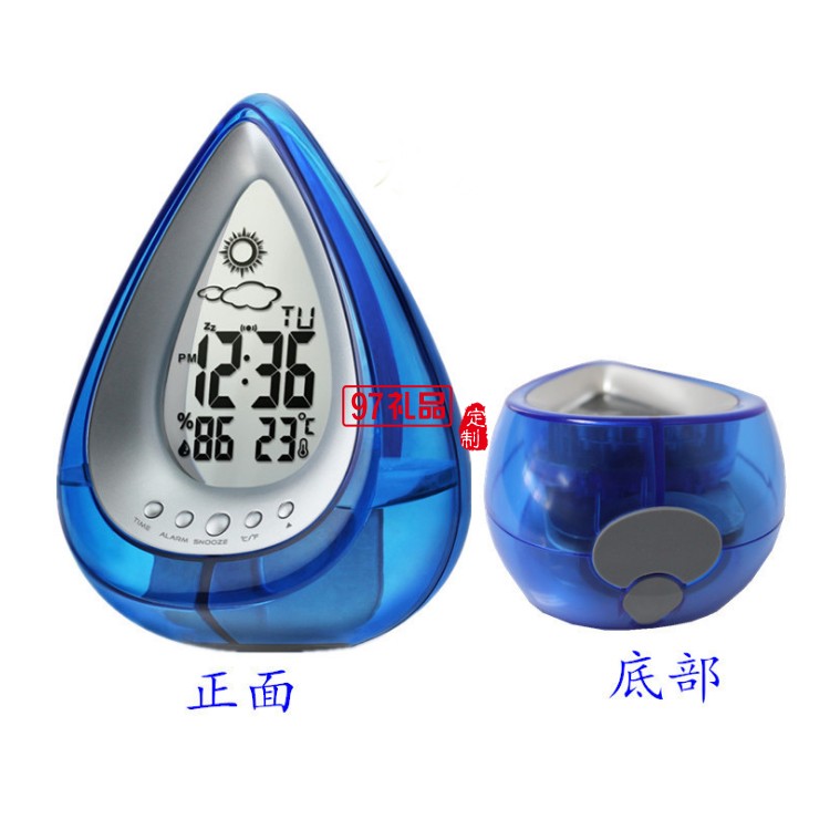 創(chuàng)意環(huán)保水動(dòng)力發(fā)電水能鐘 水滴型天氣預(yù)報(bào)時(shí)鐘 desk clock